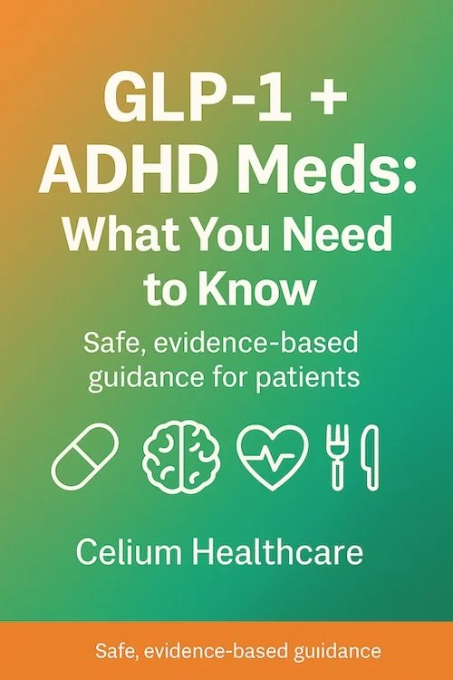 At Celium Healthcare, I specialize in ADHD treatment and medication management. If you’re considering or already starting a GLP-1, I can help you build a plan that keeps your ADHD treatment effective while protecting your overall health.